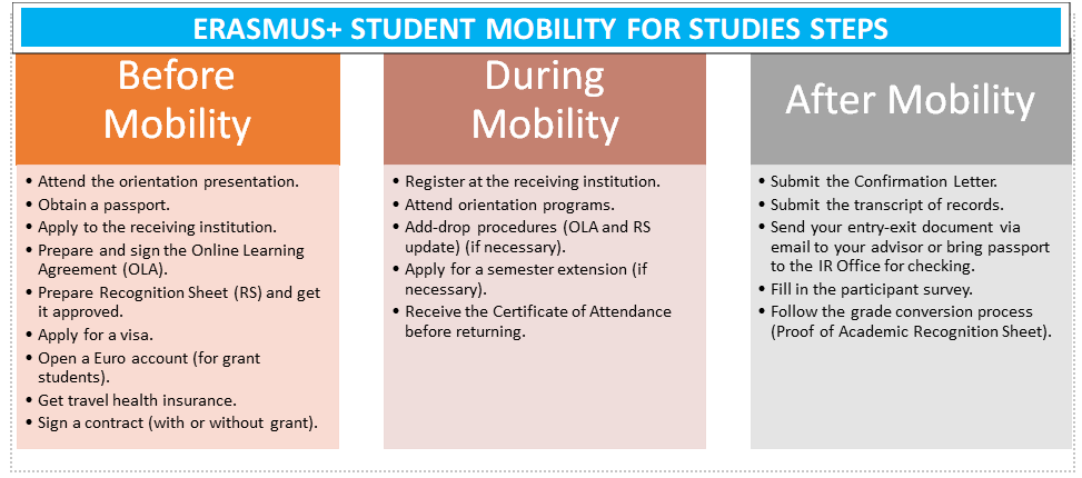 The student may receive counseling from the Office of International Relations regarding the application process of the receiving institution.